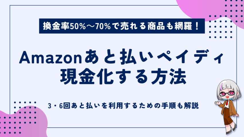 A.現金化可能です。Amazonで商品をあと払い(ペイディ)で購入後、買取業者で売却すれば現金化が可能です。