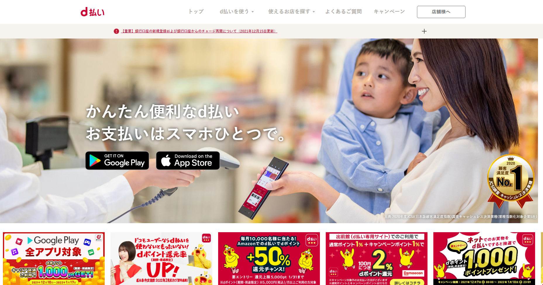 後払い機能には、「ポチっとチャージ」とドコモユーザー限定の「d払い」の2種類があります。