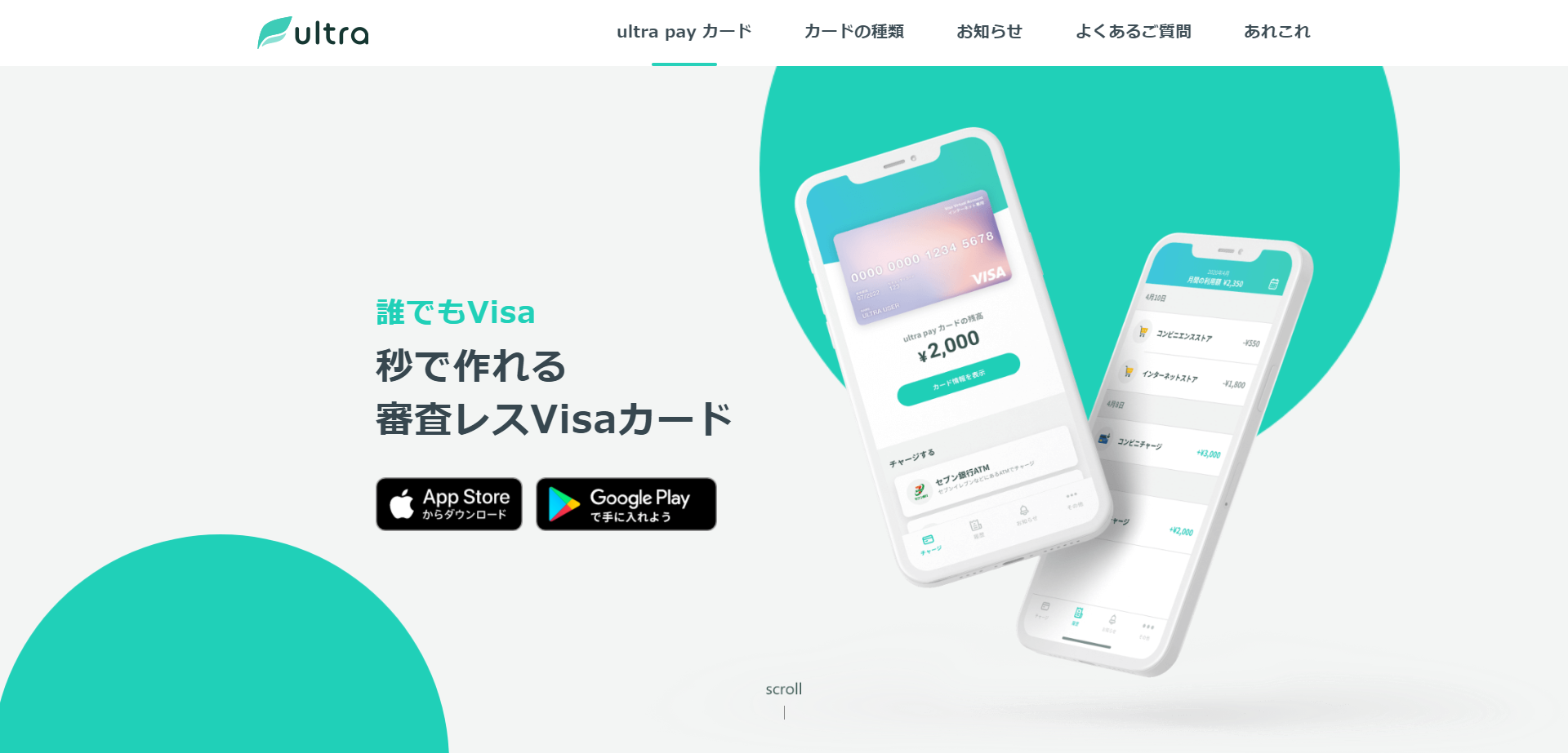 ultra payは電話番号の登録だけでバーチャルカードが発行できる後払いアプリです。