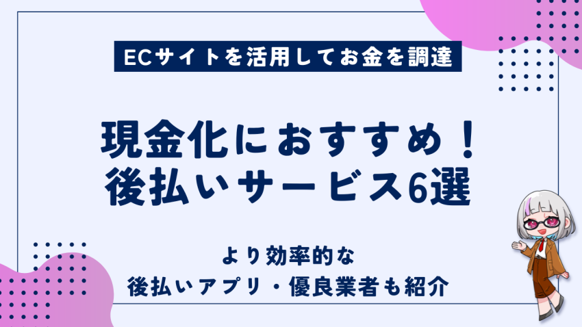 現金化におすすめの後払いサービス6選を紹介します。