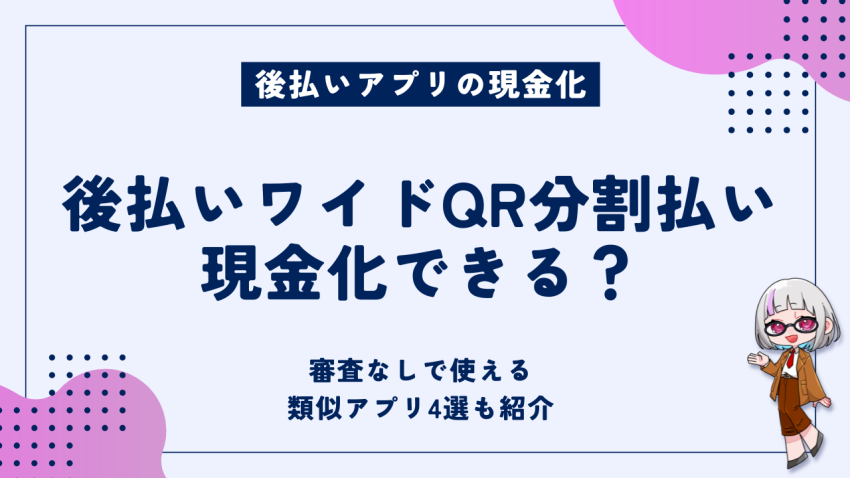 この記事で紹介している後払いアプリ現金化なら、スマホで完結・即日現金化も可能なので検討してみてください。信用ブラックでも後払いワイドQR分割払いは利用できる?